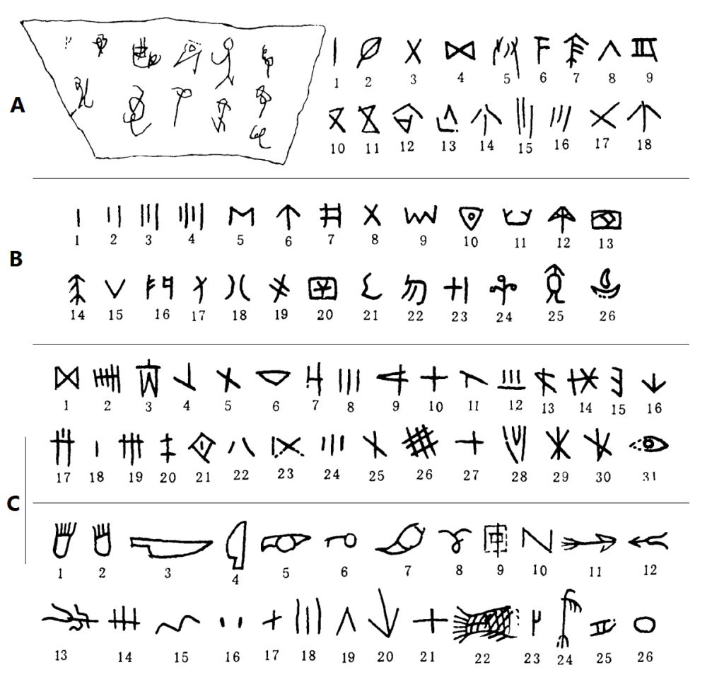 Các ký hiệu được khắc trên đồ gốm của các văn hóa ở vùng bắc Đông Á như Đại Vấn Khẩu (4300 – 2500 TCN), văn hóa Xiaoheyan trong vùng Liêu Ninh cũng bổ sung một số dạng ký hiệu vào hệ thống ký hiệu của văn hóa Đông Á cổ đại.