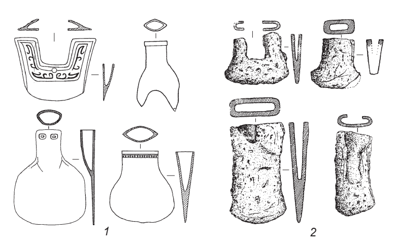 Rìu đồng văn hóa Ngô Thành (1) và rìu đồng văn hóa Đồng Đậu (2). [26]