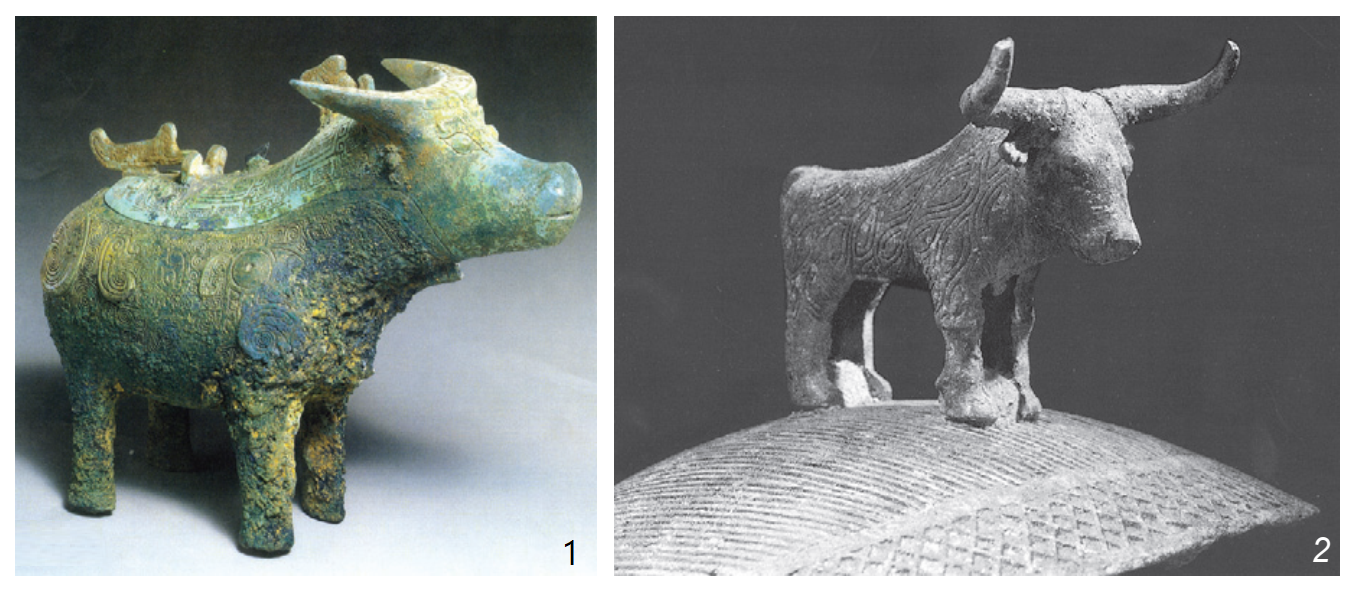 Tượng trâu của văn hóa Ngô Thành (1) cũng là một hình tượng có đặc trưng văn hóa tộc Việt được kế thừa trong giai đoạn sau, như ở văn hóa Điền Việt (2) và văn hóa Đông Sơn (ảnh dưới). [Nguồn: 1. (26); 2. Bảo tàng Barbier-Mueller, dẫn]